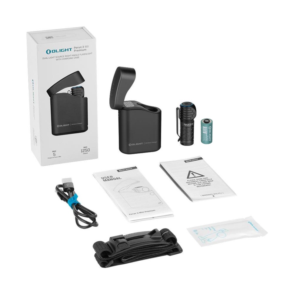Налобный светодиодный фонарь Olight Perun 3 Mini Premium от компании Olight (Олайт) работает на светодиоде Osram P9 с дополнительным светодиодом красного цвета. Фонарь имеет сверхпрочный и водонепроницаемый корпус, мощностью светового потока составляет до 1250 люмен и дальностью до 155 метров. Perun 3 Mini поставляется с LI-ion кастомным аккумулятором 16340 (Olight ORB-16C06-6С) емкостью 650 мАч и с переносным магнитным USB кабелем Olight MCC током 1 Ампер для подзарядки аккумулятора, можно заряжать фонарь от USB устройств, таких как телефонные адаптеры 220 В., накопители энергии PowerBank, ПК или USB выход в автомобиле.
